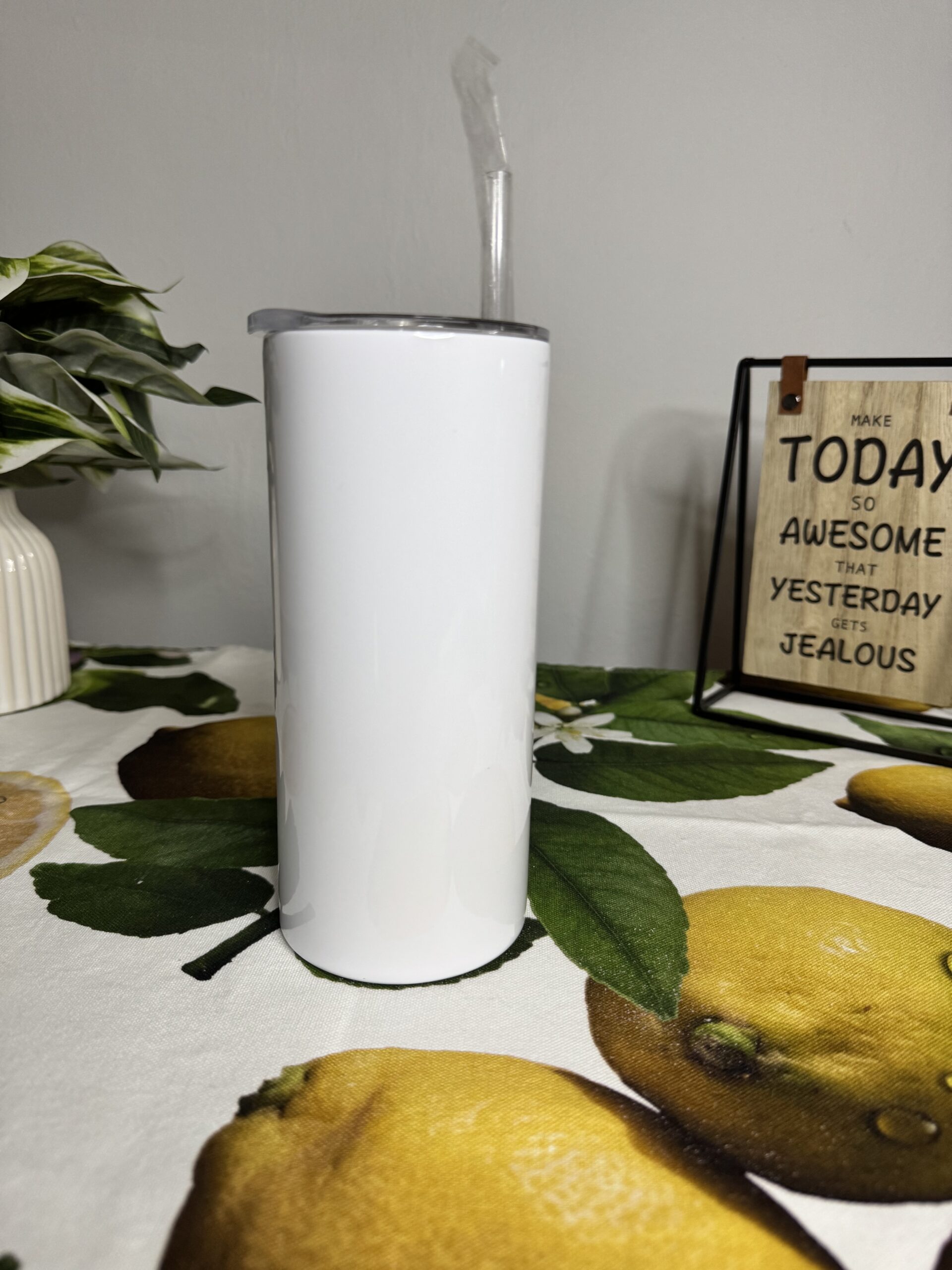 Our steel 15oz straight white skinny tumbler is a great choice for whom enjoy a variety of drinks from ice cold water to piping hot coffees.