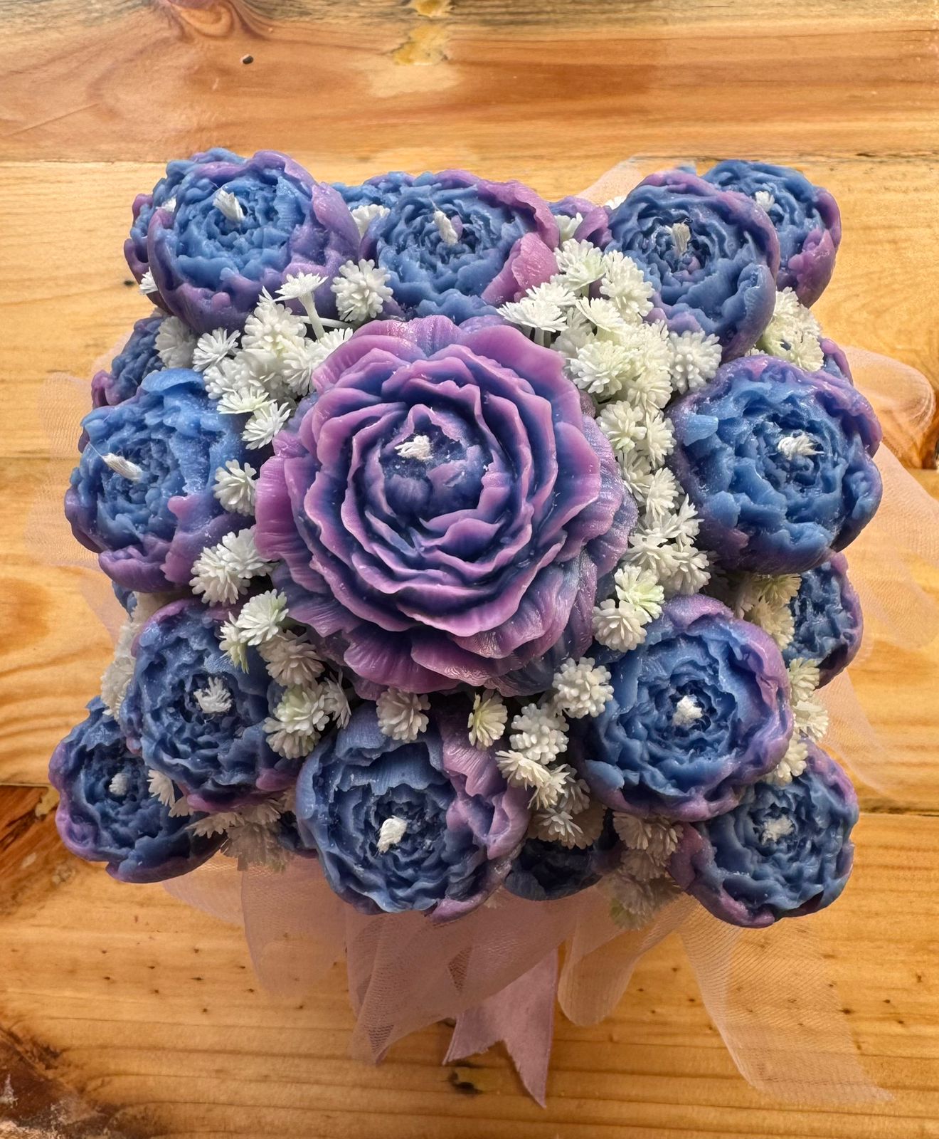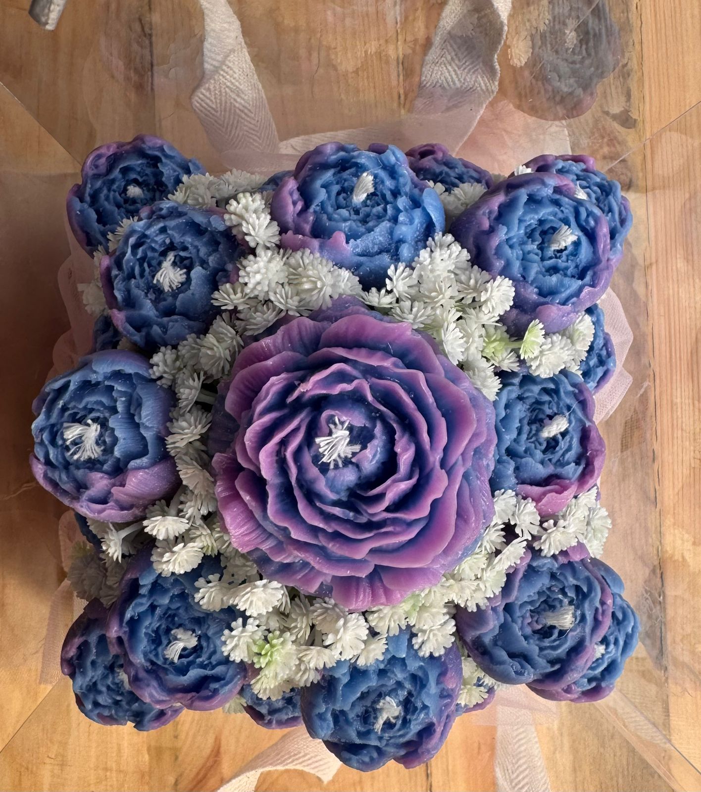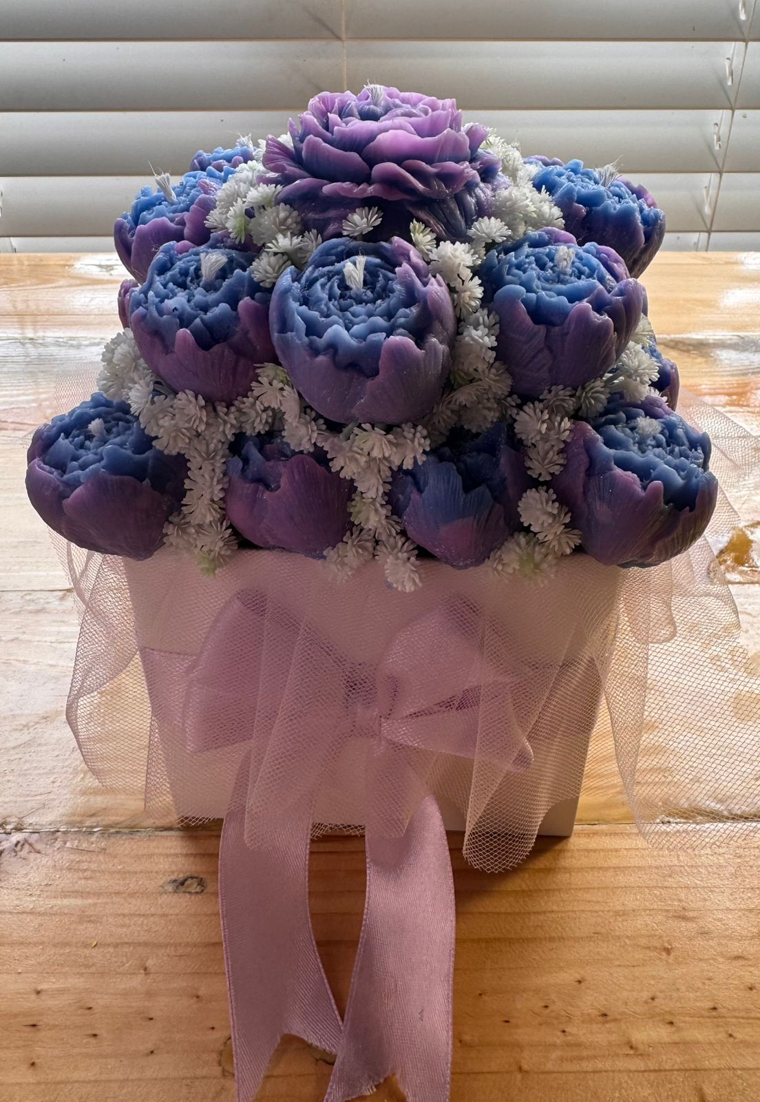 Each Bouquet Features a curated mix of Bibble coloured Candles, Delicately Nestled among