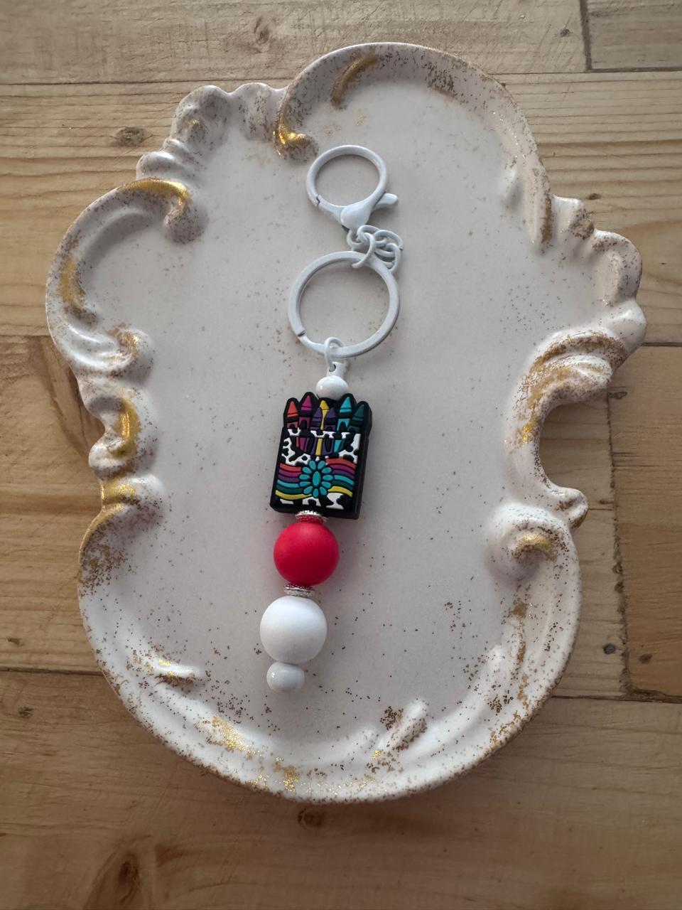Each key chain is handmade with love and features a playful mix of vibrant silicone beads, adorable charms, and a sturdy metal clasp for easy attachment to your keys, bags, backpacks, or even tumblers.