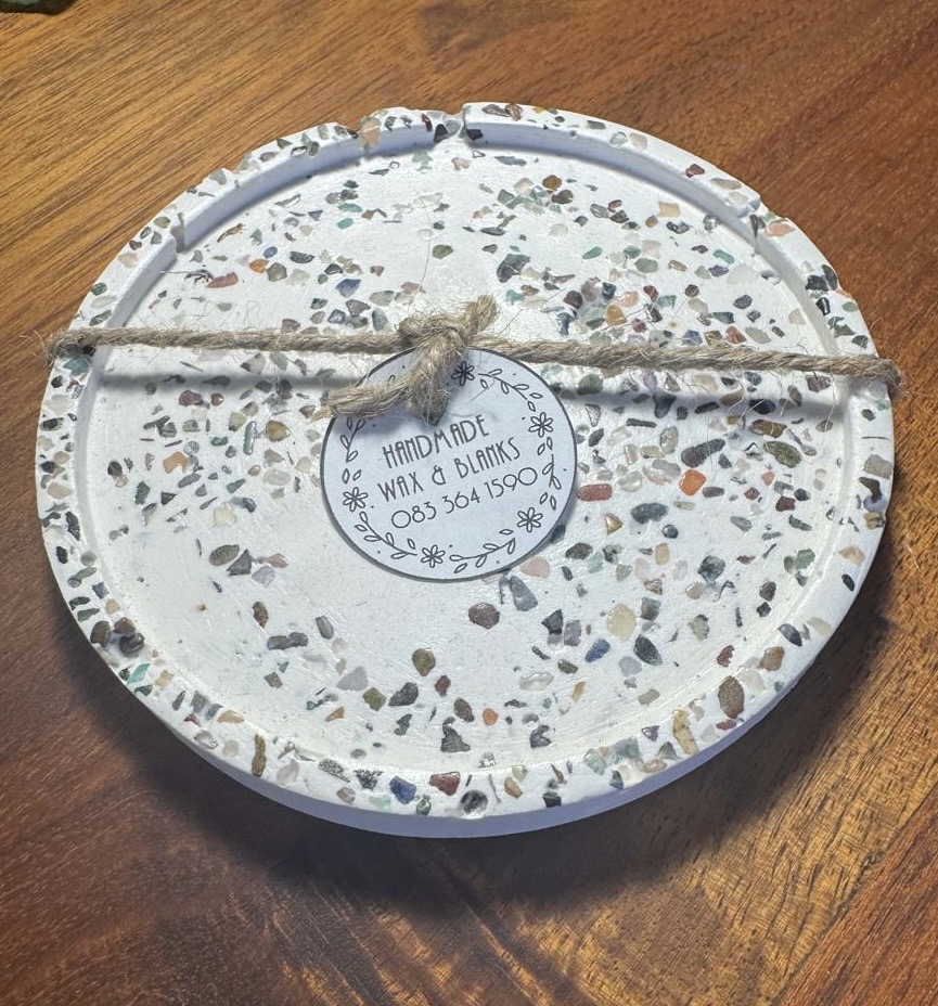This is a Handcrafted Terrazzo Tray with a neutral base and Natural stone detailing, Perfect for holding Candles, Jewellery or small decor items, each peace is Unique and Handmade with care.